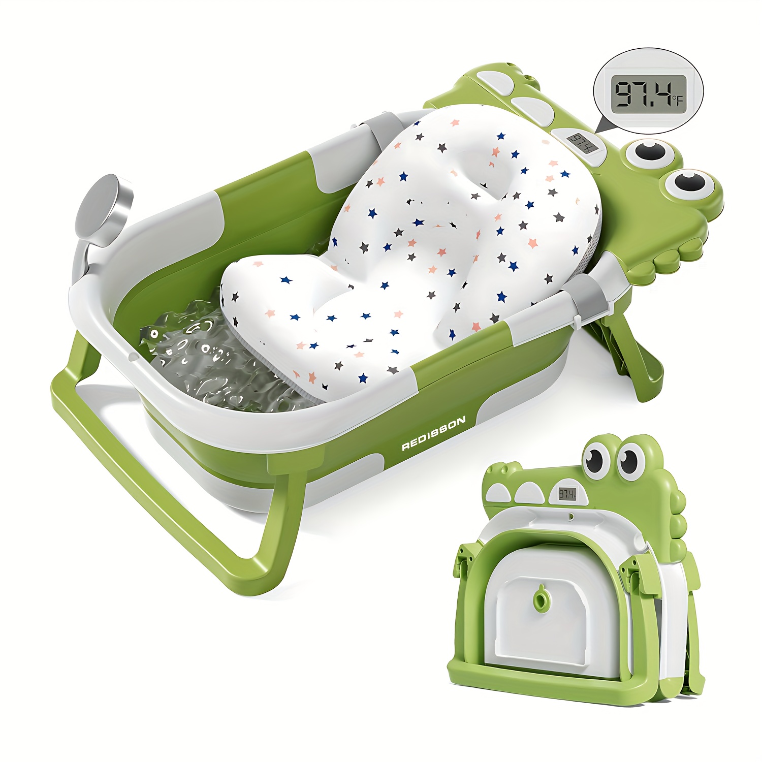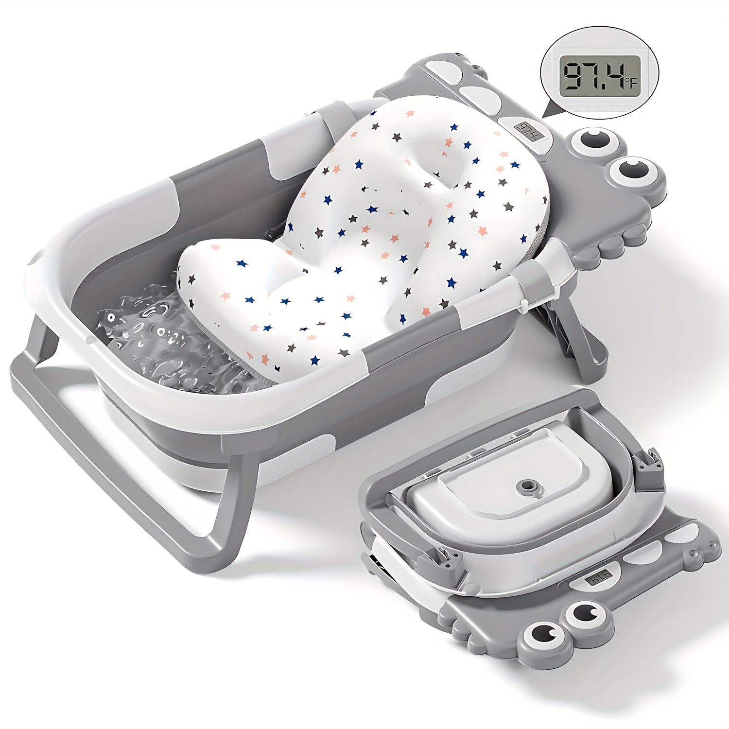 Collapsible Baby Bathtub with Real-Time Temperature Monitor & Floating Cushion